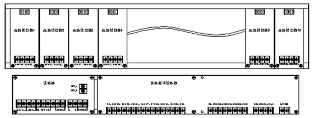 · J-EI6103型多線聯動盤,每塊聯動盤14鍵,2U高度,單臺控制器可裝10塊。